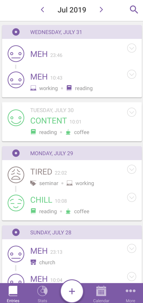 Especially if you are someone who likes a more quantitative approach, this app is for you. Daylio provides you with statistics, weekly, monthly, and even yearly. I love looking at the graphs.