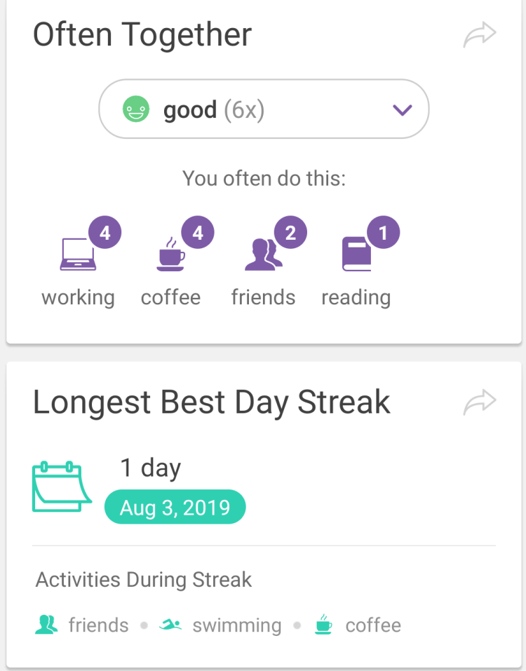 It also correlates which activities are frequently together with certain moods. So you can dive deeper to find which activity that enlighten your mood and which one is the mood-breaker.