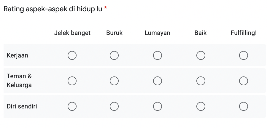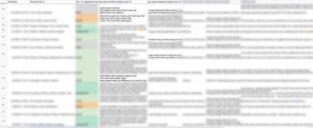 I still use Google Form to make easier daily and weekly recollection of how my life went. It’s effortless since I can always fill it with my phone even when I am sleepy. The journaling will focus on feelings or emotions (recorded daily) and things I have learned and am grateful for (recorded weekly).