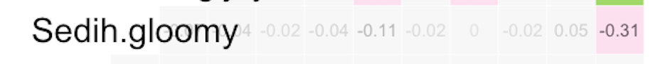 If we look at the rightmost cell, the correlation index for the general rating of how I feel during the day, being happy and confident contributes a lot to how I feel daily. Meanwhile being lonely and gloomy or sad make me feel like having a bad day.