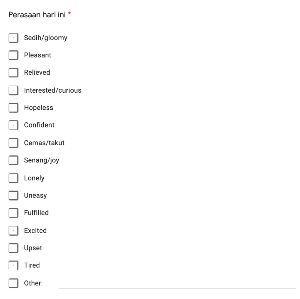 In the Gform, there’s a checkbox question that asks about how I feel. That looks like this: