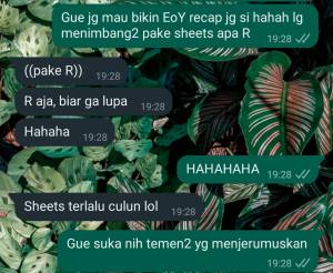 Hi there! I’m back to review how my year was, but now I’m not using Google Sheets despite my love and passion for that app. I’m using R, a love x hate alliance that I built this year in order to prepare me for my new jobdesc as a quantitative research specialist in my new workplace*. I love it because it helps me analyze more complex things, but I hate it because some functions are built inconsistently, depending on the author. A dilemma of an open-source programming language.